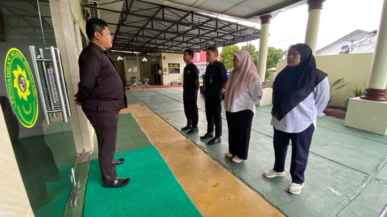 Beliau mengingatkan agar seluruh petugas senantiasa menjaga sikap ramah, sopan, dan profesional dalam menjalankan tugas sehari-hari, mengingat pelayanan prima tidak hanya menjadi tanggung jawab aparatur peradilan, tetapi juga seluruh unsur pendukung di lingkungan kantor. Selain itu, disampaikan pula beberapa hal terkait kedisiplinan waktu, penggunaan atribut kerja, serta pentingnya menjaga kebersihan area pelayanan publik, terutama di ruang tunggu dan fasilitas umum lainnya.