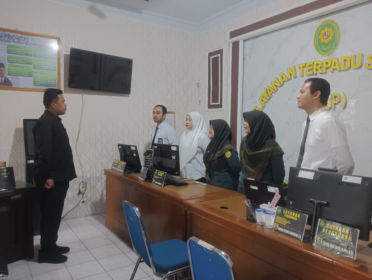 Sidikalang - Selasa 25 November 2025 Petugas PTSP Pengadilan Agama Sidikalang mengikuti kegiatan morning briefing. Bertempat diruang PTSP, Kasubbag Umum dan Keuangan, bapak Surya Darma Syahputra Berutu, M.Ag memberikan arahannya.