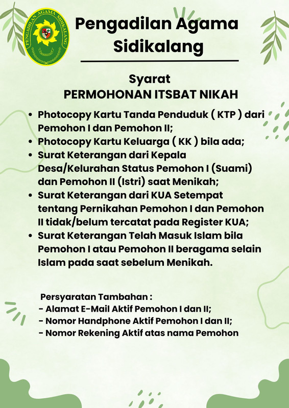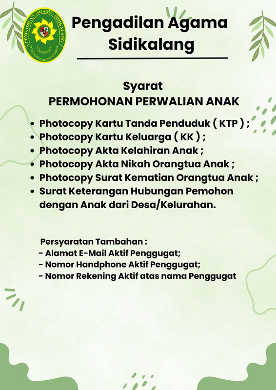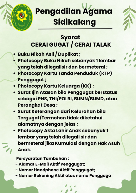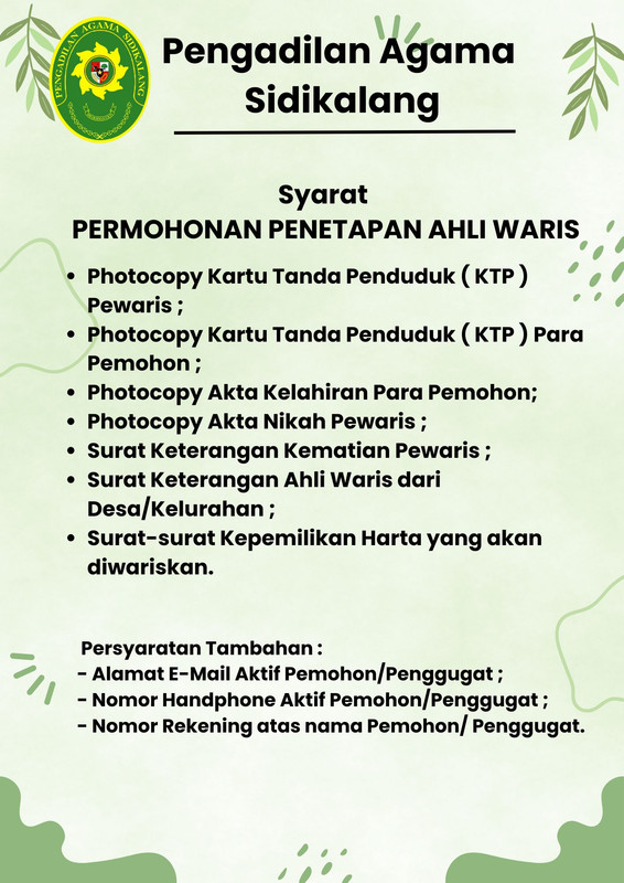 Published: November 05 2025 | Written by pakde | Hits: 485 Syarat Mengajukan Cerai Gugat / Cerai Talak Syarat Mengajukan Isbat Nikah Syarat Mengajukan Penetapan Ahli Waris Syarat Mengajukan Perwalian Anak
