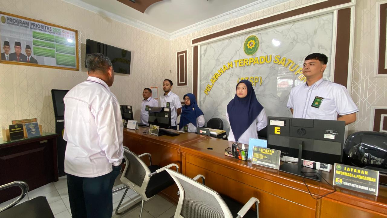 Sidikalang - Senin 16 Maret 2026 Petugas PTSP Pengadilan Agama Sidikalang kembali memulai pelayanan. Sebelum memulai pelayanan terlebih dahulu petugas PTSP memperoleh bimbingan dan arahan oleh Sekretaris Pengadilan Agama Sidikalang bapak Siswoyo, S.Kom., M.H.