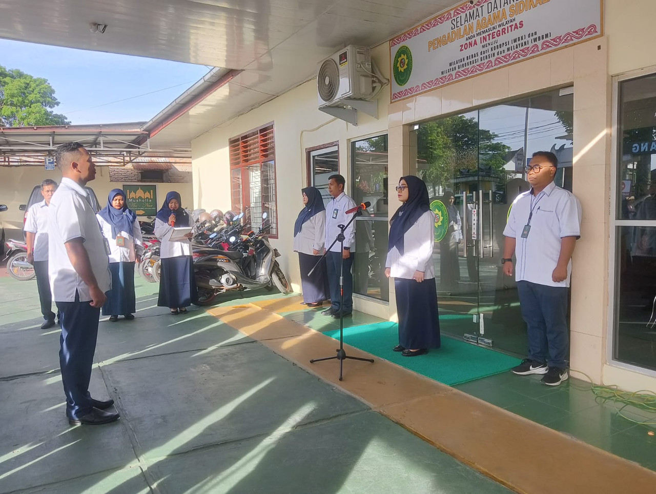Sidikalang - Senin 16 Maret 2026 bertempat di pekarangan kantor Pengadilan Agama Sidikalang dilaksanakan Morning Briefing kepada petugas keamanan dan petugas kebersihan Pengadilan Agama Sidikalang. Morning Briefing disampaikan oleh Sekretaris Pengadilan Agama Sidikalang Bapak Siswoyo, S.Kom., M.H. kepada petugas Pengadilan Agama Sidikalang.