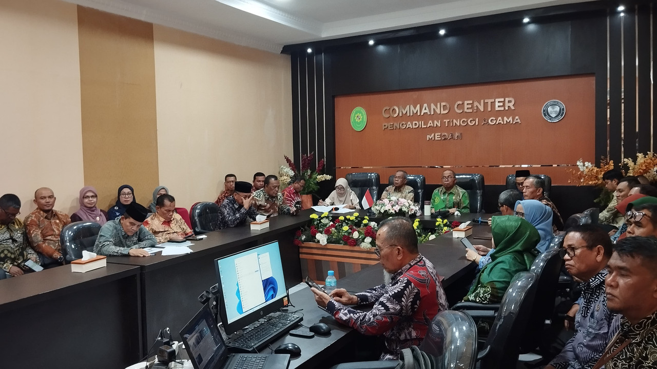 Adapun kegiatan tersebut diikuti pada 2 (dua) lokasi yang berbeda. Ketua, Wakil Ketua, dan Panitera Pengadilan Agama Sidikalang mengikuti kegiatan tersebut di Ruang Command Center PTA Medan sedangkan Hakim dan Panitera Muda Hukum Pengadilan Agama Sidikalang mengikuti kegiatan tersebut di Ruang Media Center Pengadilan Agama Sidikalang.