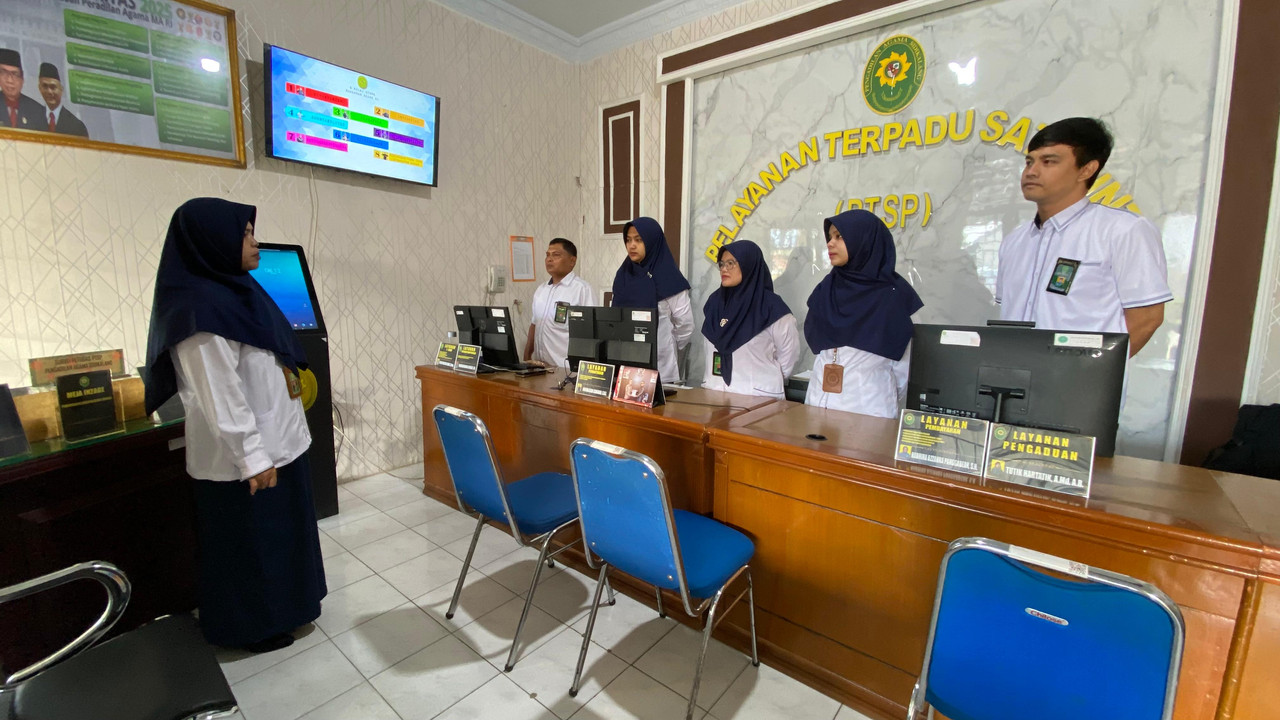Sidikalang- Senin 4 Agustus 2025 Petugas PTSP Pengadilan Agama Sidikalang kembali mengikuti kegiatan Morning Briefing di awal bulan Agustus, sebelum memulai pelayanan kepada masyrakat. Adapun pemateri pada kesempatan kali ini adalah Panitera Muda Hukum Pengadilan Agama Sidikalang, ibu Yusmidawarni Daulay,S.H.