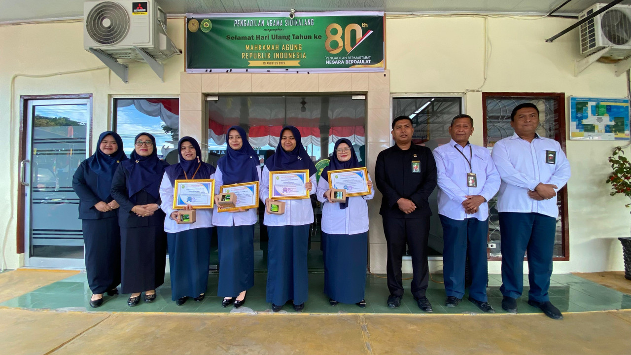 Setelah pelaksaan apel pagi dilaksanakan, dilanjut dengan pembacaan pegawai terbaik Pengadilan Agama Sidikalang Semester I yang terdiri dari kategori pegawai kepatniteraan terbaik, pegawai kesekretariatan terbaik, Pegawai Pemerintah Non Pegawai Negeri(PPNPN) terbaik, dan Pegawai Pelayanan Terpadu Satu Pintu(PTSP) terbaik, acara ditutup dengan pemberian piagam penghargaan kepada para pegawai pemenang kategori dan foto bersama. Selamat pada para pegawai semoga dengan penghargaan ini kinerja seluruh pegawai Pengadilan Agama Sidikalang lebih ditingkatkan. (TH)