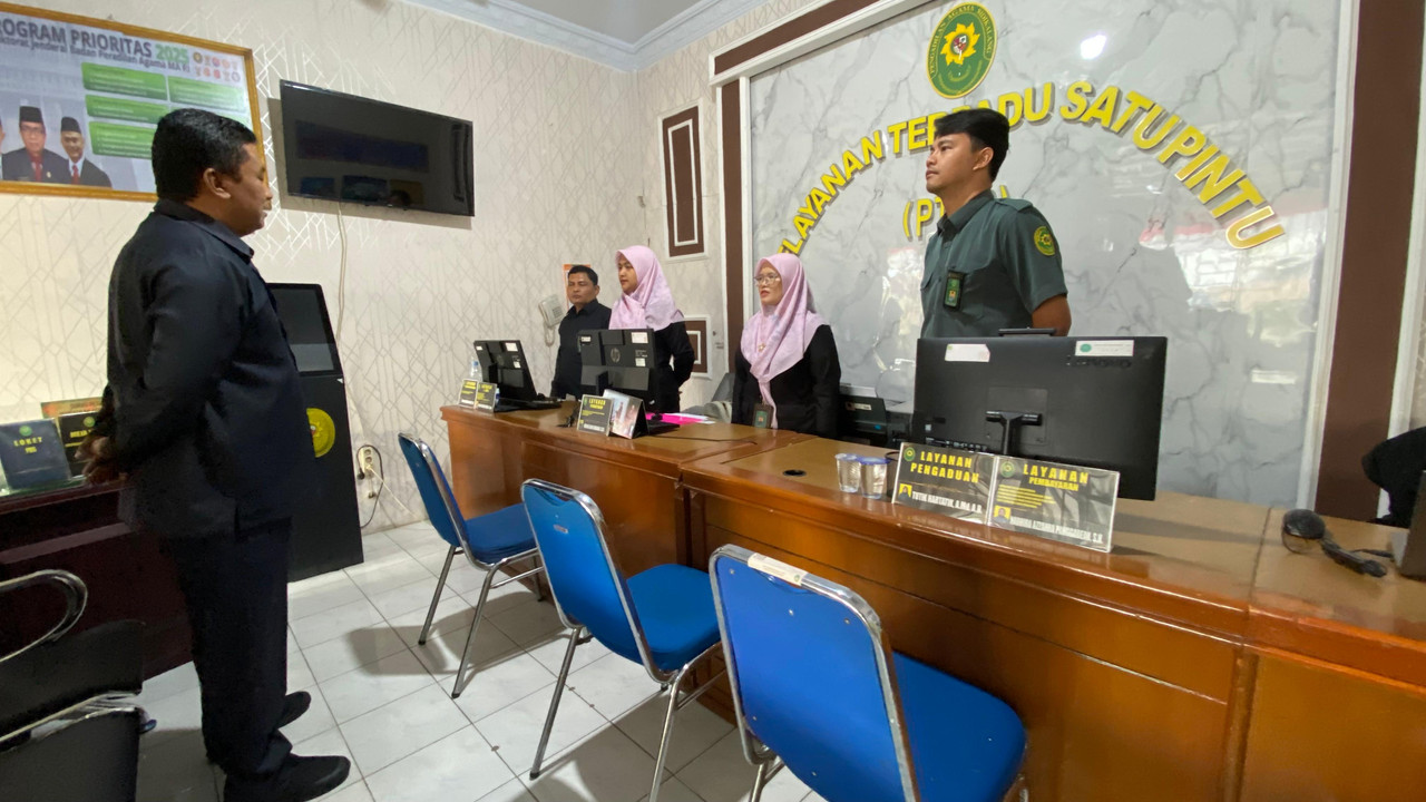 Sidikalang- Rabu 3 September 2025 Petugas PTSP Pengadilan Agama Sidikalang kembali memulai pelayanan. Sebelum memulai pelayanan terlebih dahulu petugas PTSP memperoleh bimbingan dan arahan oleh Sekretaris Pengadilan Agama Sidikalang bapak Siswoyo, S.Kom., M.H.