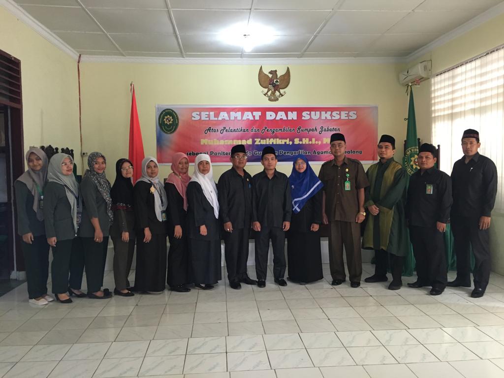 SIDIKALANG | Rabu, 26 Juni 2019, Ketua PA Sidikalang kembali melantik Bapak Muhammad Zulfikri, S.H.I., sebagai Panitera Muda Gugatan pada Pengadilan Agama Sidikalang yang sebelumnya beliau merupakan Panitera Muda Permohonan PA Sidikalang dan dimutasi ke PA Sibuhuan.
