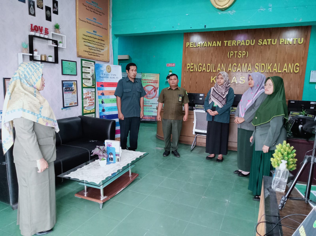 Sidikalang- Rabu tanggal 20 September 2023 Dipagi hari ini Seluruh petugas PTSP Pengadilan Agama Sidikalang tampak bersemangat mengikuti kegiatan morning briefing yang rutin dilaksanakan setiap Rabu pagi. Panitera Muda Hukum Pengadilan Agama Sidikalang, ibu Yusmidawarni Daulay,S.H tampil sebagai pemberi materi dalam briefing hari ini.