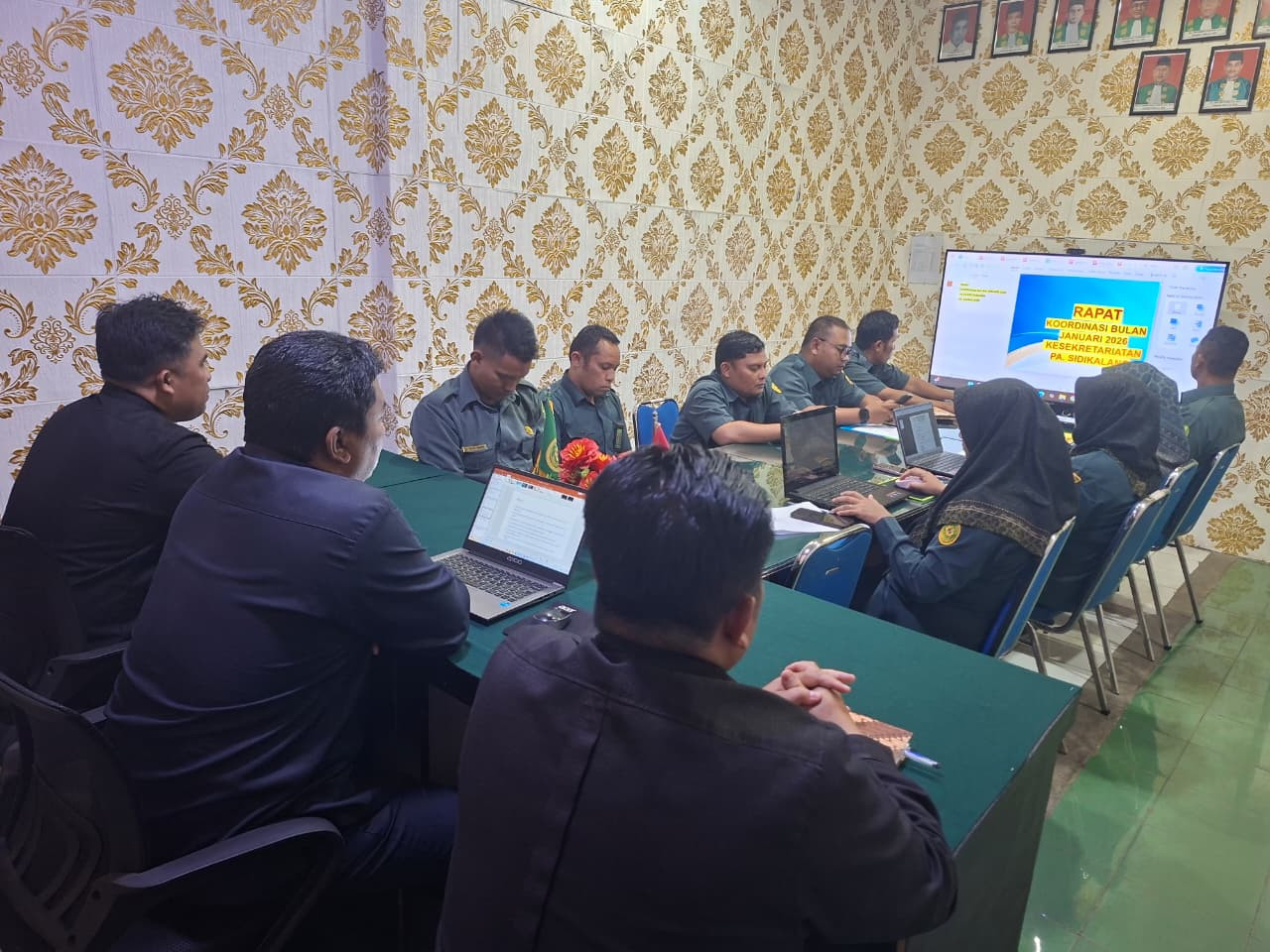 Sidikalang - Selasa 27 Januari 2026 Sekretaris Pengadilan Agama Sidikalang, Bapak Siswoyo, S.Kom., M.H. Menyelenggarakan rapat koordinasi kesekretariatan maka seluruh Aparatur Pengadilan Agama Sidikalang yang bertugas di Kesekretariatan mengikuti Rapat Koordinasi ini. Bertempat di Media Center Pengadilan Agama Sidikalang rapat dimulai tepat pukul 14.00 WIB. Dipimpin langsung oleh Sekretaris Pengadilan Agama Sidikalang, rapat inipun membahas rencana kerja Kesekretariatan pada bulan Januari.