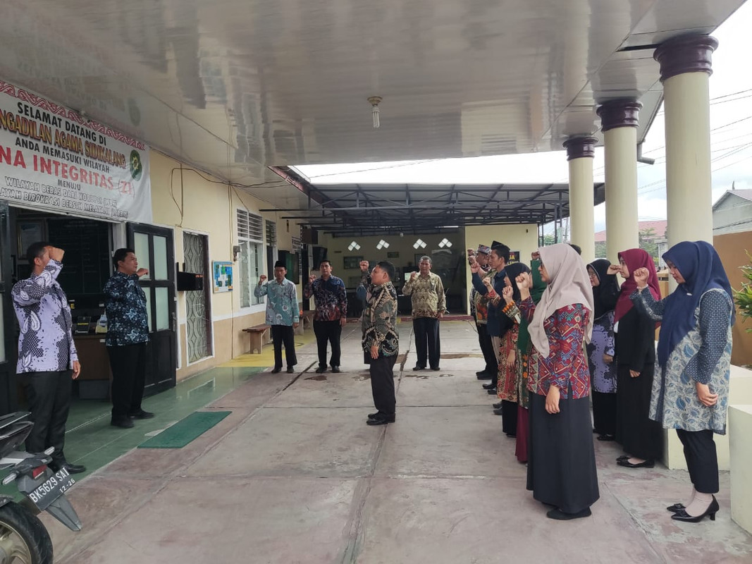 Sidikalang- Senin tanggal 22 Januari 2024 Seluruh Aparatur Pengadilan Agama Sidikalang melaksanakan Apel pagi yang dipimpin oleh bapak Isrofi, A.Md sebagai komandan apel dan Ketua Pengadilan Agama Sidikalang, Bapak Mhd. Ghozali S.H.I.,M.H. sebagai Pembina apel pagi pada kesempatan kali ini.