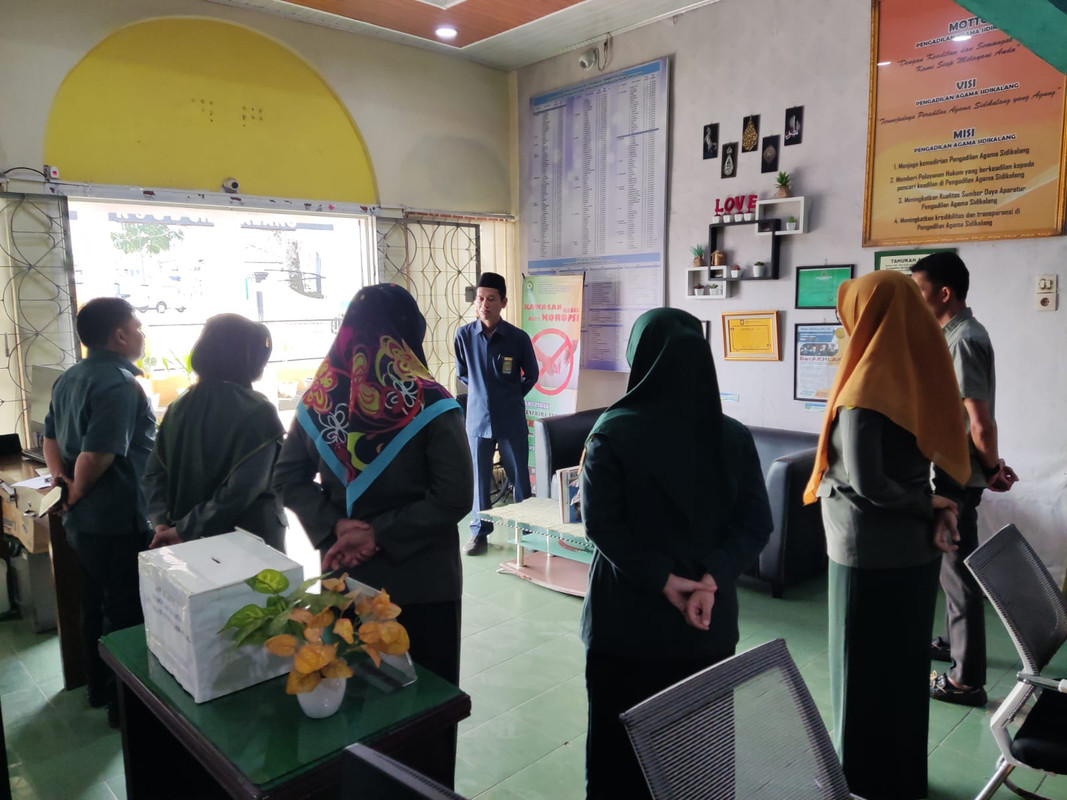Sidikalang- Rabu tanggal 28 Februari 2024 Seluruh Petugas PTSP Pengadilan Agama Sidikalang ikuti kegiatan Morning Briefing yang dipimpin oleh Ketua Pengadilan Agama Sidikalang, bapak Mhd. Gozali,S.H.I.,M.H. Dalam amanatnya beliau mengingatkan kepada seluruh petugas PTSP bahwa hal pertama yang harus ditanamkan Ketika bekerja adalah keikhlasan. Ikhlas disini berati mengerjakan seluruh pekerjaan dengan penuh rasa tanggung jawab. Selanjutnya dalam bekerja kita pula harus mengetahui tugas pokok dan fungsi masing-masing sehingga setiap pekerjaan yang diberikan kepada kita dapat tuntas. Dan terakhir beliau mengatakan untuk tidak menunda-nunda pekerjaan.