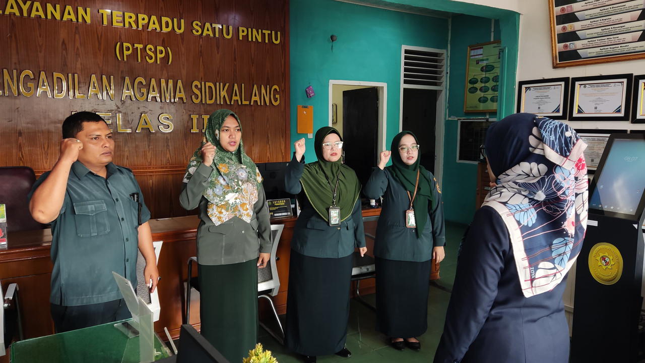 Sidikalang- Selasa tanggal 5 November 2024 Ketua Pengadilan Agama Sidikalang, Ibu Sri Suryada, S.H.I.,M.H berikan arahan kepada seluruh petugas PTSP Pengadilan Agama Sidikalang dalam morning briefing.