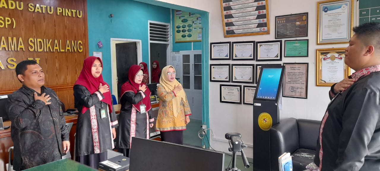 Bersinergi dengan Yel-Yel yang disorakkan oleh Petugas pada saat Briefing tersebut, PTSP Pengadilan Agama Sidikalang “Pelayanan Prima” “No Pungli” “Bersih Melayani”. (uxwhite)