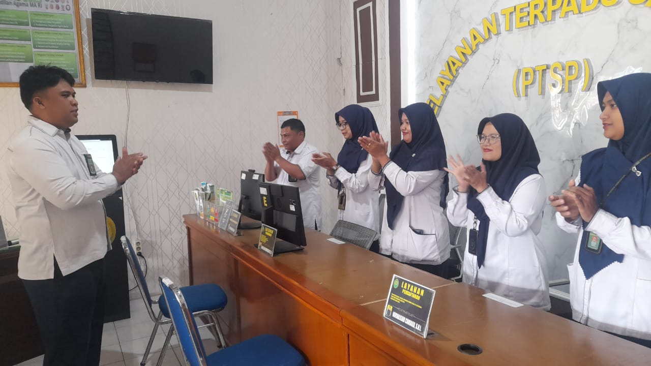 Sidikalang- Senin tanggal 21 April 2025 Petugas PTSP Pengadilan Agama Sidikalang memeroleh bimbingan dan arahan pada saat morning briefing yang diberikan oleh Kasubbag Umum dan Keuangan, bapak Surya Darma Syahputra Berutu, M.Ag.