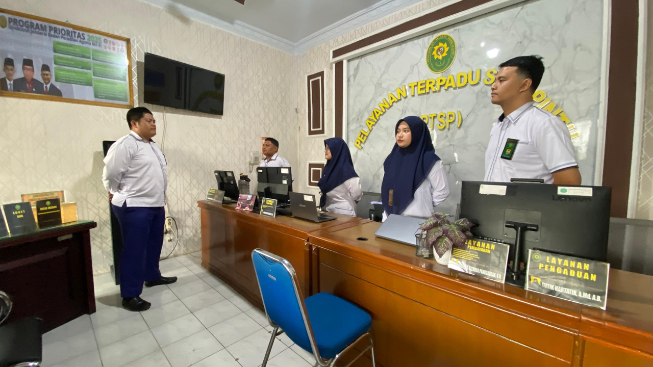 Sidikalang - Senin 29 Desember 2025 Kasubbag PTIP Pengadilan Agama Sidikalang bapak Ramli Affandi Berutu, S.H.I., M.Ag. memberikan bimbingan dan arahan dalam morning briefing kepada seluruh petugas PTSP Pengadilan Agama Sidikalang.