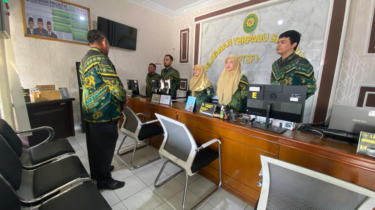 Sidikalang - Kamis 12 Maret 2026 Petugas PTSP Pengadilan Agama Sidikalang mengikuti kegiatan Morning Briefing sebelum memulai pelayanan pada hari ini. Adapun yang menjadi pemberi materi pada morning briefing hari ini adalah Panitera Pengadilan Agama Sidikalang bapak Basyirun Maha, S.H.