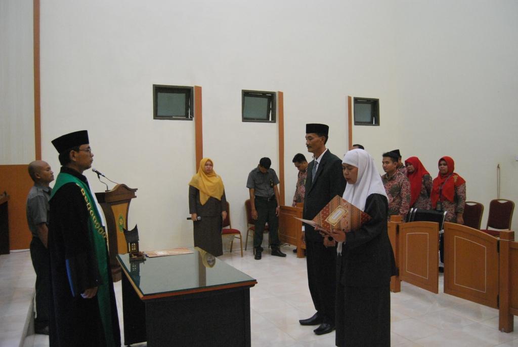 Pelantikan dan Sumpah Jabatan dilakukan oleh Bapak Ketua PA Kabanjahe. Setelah acara pelantikan selesai Bapak Ketua PA Kabanjahe memberikan amanat kepada para pejabat yang telah dilantik selanjutnya kedua pejabat yang dilantik melakukan pengenalan diri dihadapan seluruh pegawai PA Sidikalang dan PA Kabanjahe.