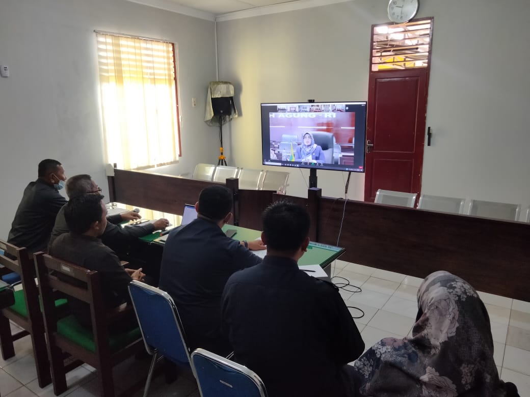 Sidikalang‒ Senin tanggal 29 Maret 2021 Tim Zona Integritas Pengadilan Agama Sidikalang yang dalam hal ini Ketua Pengadilan Agama Sidikalang Rohyan,S.H., Ketua Zona Integritas Zainul Fajri, S.H.I., Panitera Basyirun Maha, S.H.,, Sekretaris Akhmad Saleh Hasibuan, S.Kom., Berliana Nasution, S.H., Ramli Affandi Berutu, S.H.I. dan Koordinator masing-masing area mengikuti Zoom Meeting Pembinaan Zona Integritas Menuju WBK dengan Direktorat Jenderal Badan Peradilan Agama RI bertempat di Ruang Media Center Pengadilan Agama Sidikalang. Kegiatan ini diikuti oleh Pengadilan Tinggi Agama Medan beserta 22 Satker Pengadilan Agama se-Wilayah Pengadilan Tinggi Agama Medan.