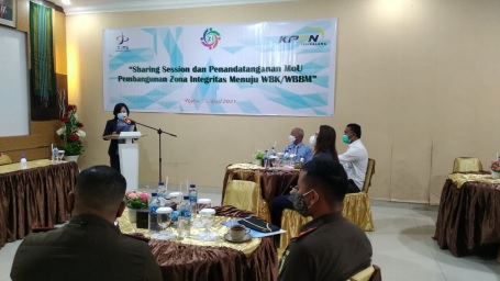 Kepala KPPN Sidikalang Ibu Nova Juliana Sianturi dalam sambutannya menyatakan bahwa Acara Sharing Session ini merupakan sarana berbagi pengalaman dan tips dari satker yang telah memperoleh WBK. Narasumber dalam kegiatan ini adalah Bapak Syahrul J. Subuki, S.H., M.H., Kepala Kejaksaan Negeri Dairi dan Bapak Amir Fauzi, Kepala Kantor Pelayanan Pajak Pratama Kabanjahe. Kedua satker tersebut telah memperoleh WBK pada tahun 2020. Adapun satker KPPN Sidikalang telah memperoleh WBK pada tahun 2019 dan sedang berjuang kembali memperoleh WBBM pada tahun ini setelah gagal di tahun 2020.