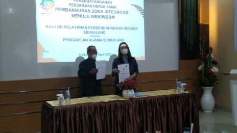 Sidikalang- Rabu tanggal 7 April 2021 Ketua Pengadilan Agama Sidikalang, Bapak Rohyan, S.H. menghadiri Acara Sharing Session dan Penandatanganan MoU Pembangunan Zona Integritas Menuju WBK/WBBM yang dilaksanakan di Kantor Pelayanan Perbendaharaan Negara Tipe A2 Sidikalang.
