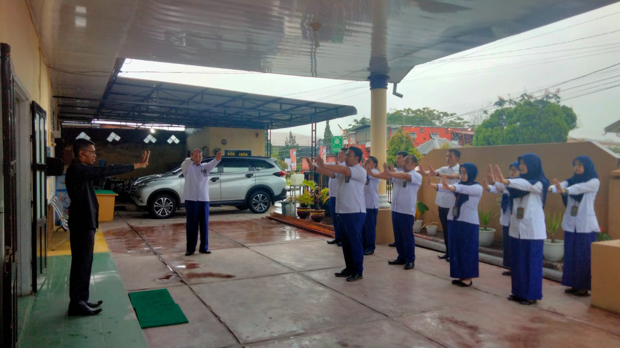 Sidikalang – Senin 31 Oktober 2022 , Sejak tengah malam Kota Sidikalang diguyur dengan hujan yang cukup deras hingga pagi ini. meskipun Kota Sidikalang dalam kondisi di guyur hujan tidak menyurutkan semangat seluruh aparatur Pengadilan Agama Sidikalang untuk melaksanakan Apel Senin Pagi yang di laksanakan di Halaman Kantor Pengadilan Agama Sidikalang. Bertindak sebagai Pembina Apel Pagi Kali ini yakni Ketua Pengadilan Agama Sidikalang, bapak Mhd. Ghozali S.H.I., M.H. dan bertindak sebagai Pemimpin Apel Saudara Azhadi Ramadhan (PPNPN).