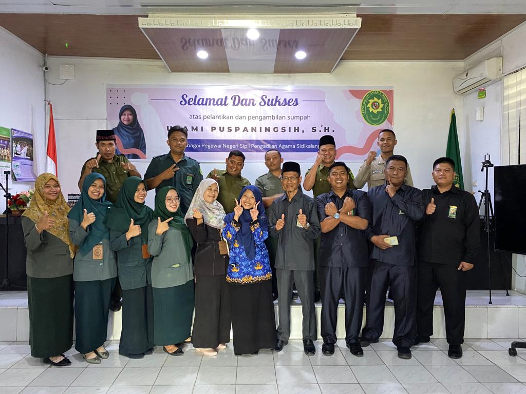 Sidikalang- Selasa tanggal 14 Maret 2023 Seluruh Aparatur Pengadilan Agama Sidikalang menghadiri acara pengambilan sumpah Pegawai Negeri Sipil atas nama Utami Puspaningsih, S.H. Bertempat diruang sidang Pengadilan Agama Sidikalang, acara ini berjalan khidmat dan lancar.
