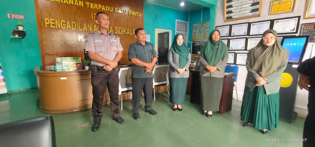 Sidikalang- Rabu tanggal 1 November 2023 Seluruh petugas PTSP Pengadilan Agama Sidikalang kembali ikuti Morning Briefing. Kegiatan ini dipimpin oleh Kasubbag Umum dan Keuangan, bapak Surya Darma Syahputra Berutu, M.Ag.
