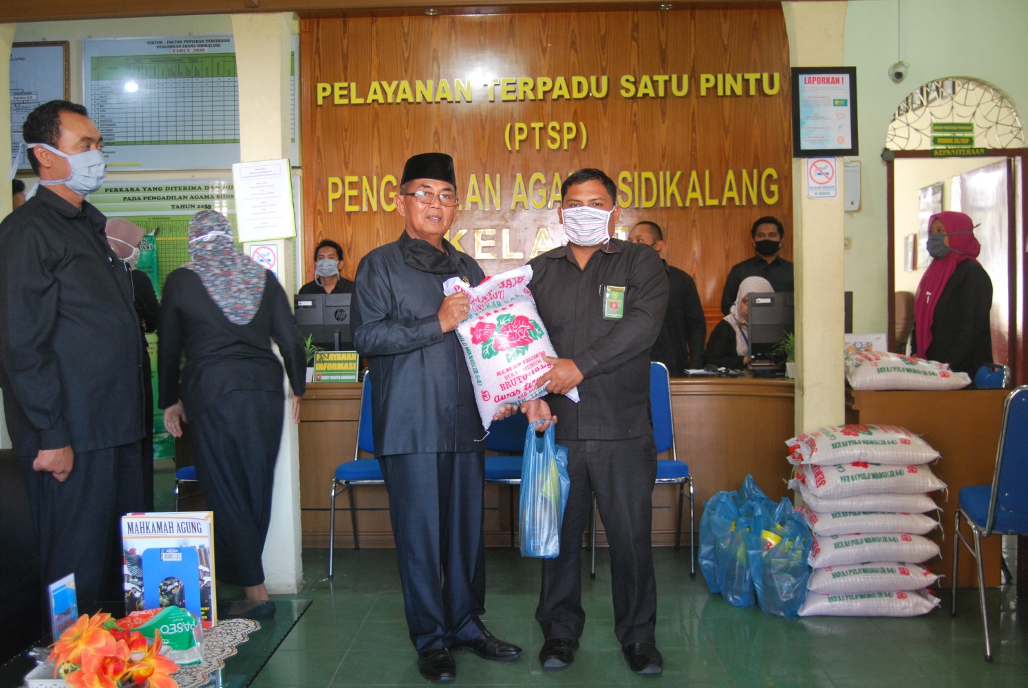Selasa, 14 April 2020, pukul 14.00 WIB merupakn hari berbagi, berbagi rasa kasih sayang peduli atas pandemi wabah Covid- 19 atau yang lebih dikenal dengan Virus Corona, Ketua Pengadilan Agama Sidikalang, Rohyan S.H, bersama seluruh jajaran aparatur Pengadilan Agama Sidikalang melaksanakan kegiatan pembagian sembako kepada PPNPN.